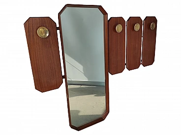 Specchio da ingresso in legno con appendiabiti, anni '60
