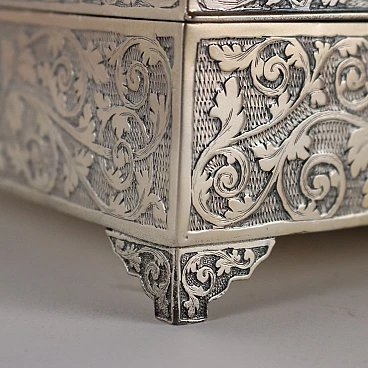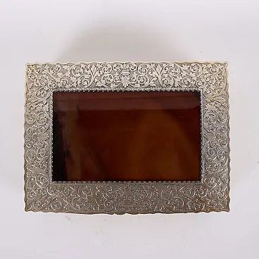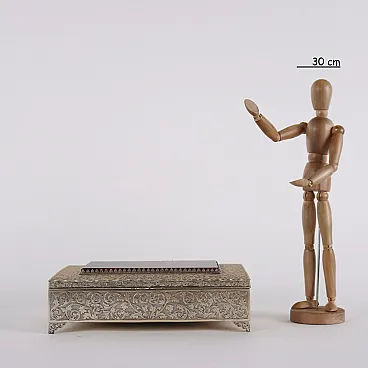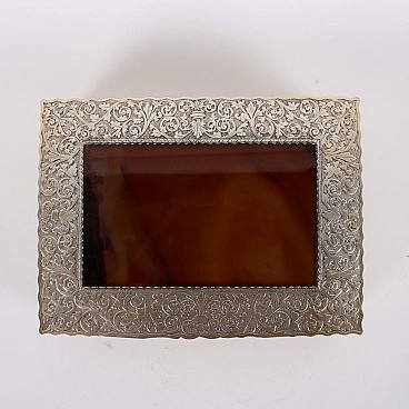 Scatola in argento inciso a volute fogliacee e vetro simil agata