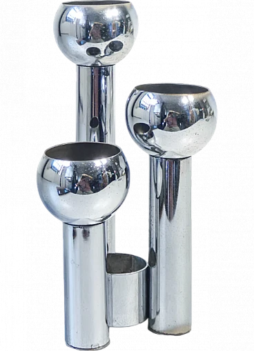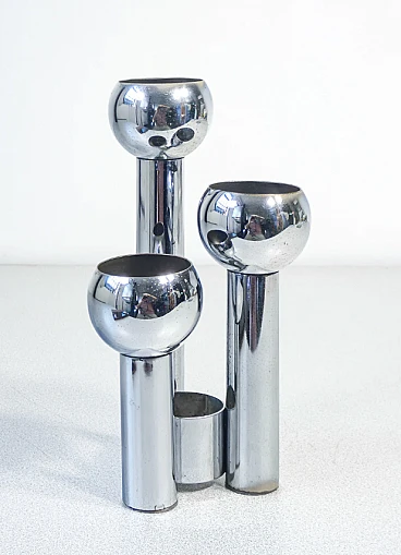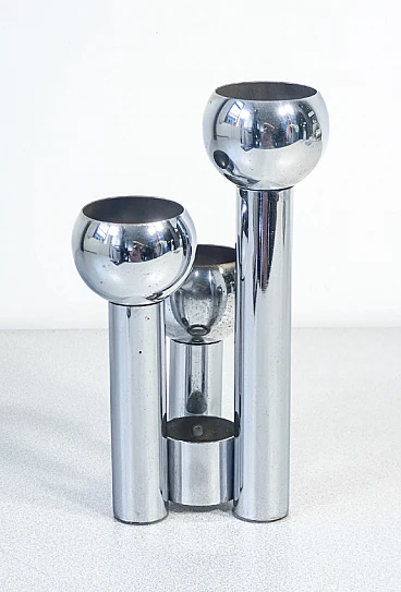 Portacandele in metallo cromato, anni '70