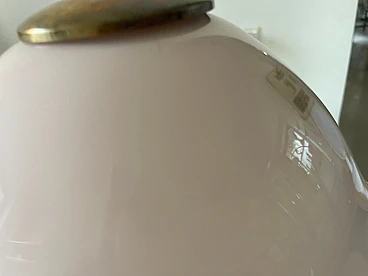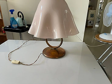 Grande lampada da tavolo in vetro di Murano rosa e rame Vetri Murano 004 Altezza 48 cm Larghezza della base in rame 22 cm Larghezza del paralume in vetro di Murano 40 cm Profondità 40 xm Dispone di 3 lampadine E14 Spina europea. Questo pezzo ha un marchio di attribuzione, sono sicuro che sia completamente autentico e mi assumo la piena responsabilità per qualsiasi problema di autenticità derivante da un'errata attribuzione.