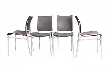 Gruppo di quattro sedie Cassina, modello “Coco” color canna di fucile grigio antracite, firmate sotto la base. Struttura in metallo satinato, presentano lievi usure, seduta in ordine. Altezza seduta cm 47.