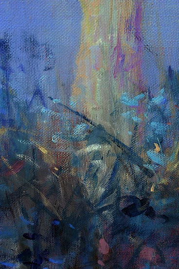 La "Metamorfosi blu" di Alfonso Pragliola è un accattivante olio su tela di 170 x 133 cm. L'opera è una rappresentazione vivida e onirica, che evoca scenari intimi e personali che rispecchiano la personalità dell'artista. Pragliola gioca magistralmente con i colori e la luce per creare una composizione che si colloca senza soluzione di continuità tra realtà e sogno. In "Blue Metamorphosis", l'estro creativo di Pragliola risplende, mostrando la sua capacità di proiettarsi verso la modernità pur riconoscendo il passato. L'opera cattura lo spettatore, trascinandolo nell'universo artistico sfaccettato e altamente espressivo di Pragliola. È una testimonianza della sua abilità e della sua visione, che lo rende un pezzo significativo per qualsiasi collezione. Dimensioni: 170 x 133 cm Condizioni: Eccellente, ben conservato La capacità di Pragliola di fondere elementi di realtà con scenari onirici è evidente in questo capolavoro. L'uso di blu vibranti e il gioco di luci e ombre creano un effetto ipnotico, trascinando lo spettatore in uno stato contemplativo. L'opera non solo mette in mostra l'abilità tecnica di Pragliola, ma anche la sua visione unica, rendendo "Blue Metamorphosis" un'aggiunta accattivante a qualsiasi collezione d'arte.
