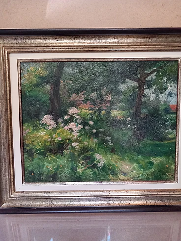 Dipinto olio su tavola Paesaggio artista Albert Sirtaine, Belgio anni
