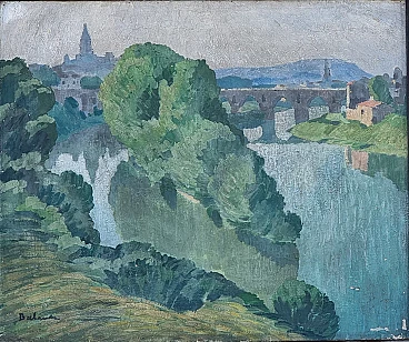 Paesaggio francese Veduta di Montauban olio su tela