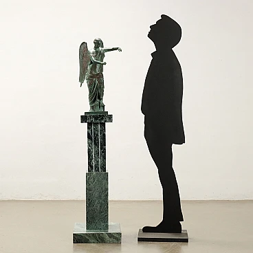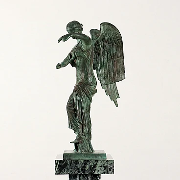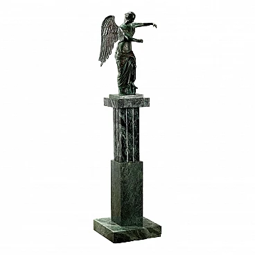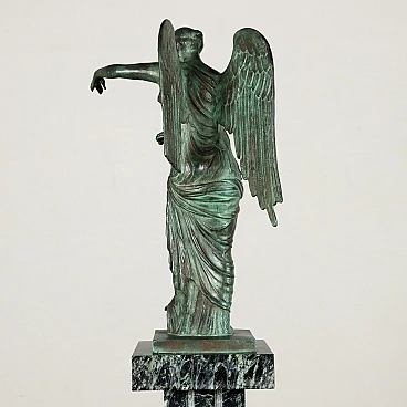Copia da Vittoria Alata di Brescia in bronzo su colonna in marmo