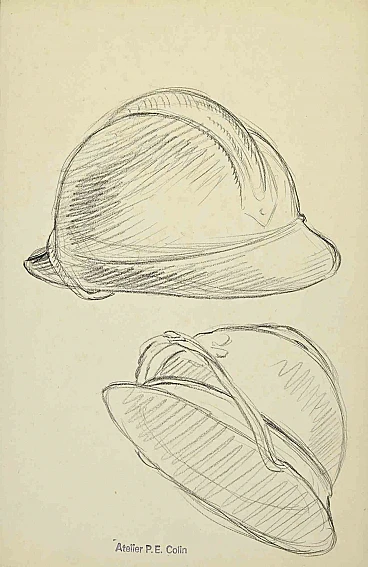 Casco è un disegno realizzato da Paul Emile Colin a metà del XX secolo. Matita carbone su carta color avorio. Timbrato nella parte inferiore. Buone condizioni con leggero foxing. L'opera d'arte è realizzata attraverso tratti abili ed espressivi.