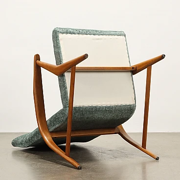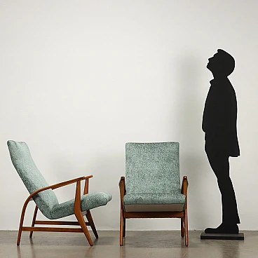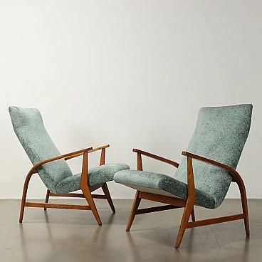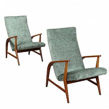 Coppia di poltrone in faggio tinto e velluto, anni '50