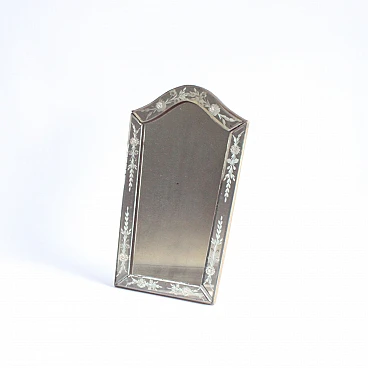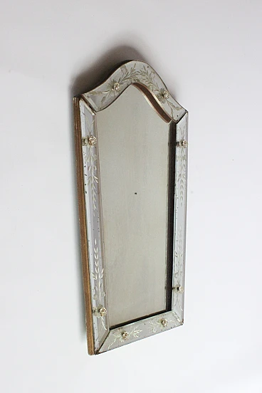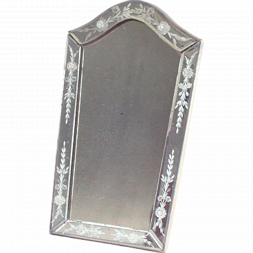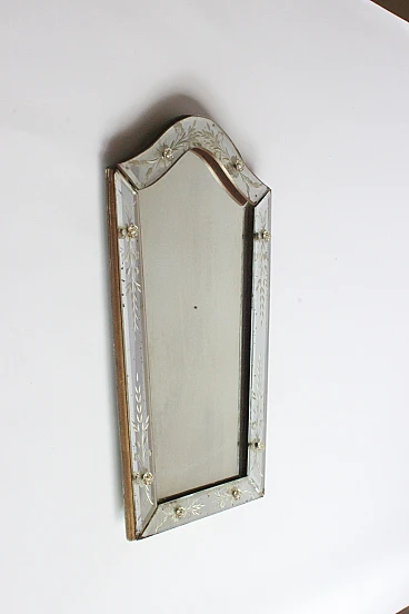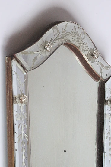 Specchio in vetro veneziano acidato con rosette, anni '30