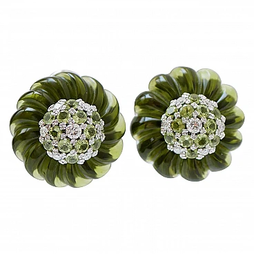 Orecchini in oro bianco 14 kt con quarzo verde, peridoti, diamanti