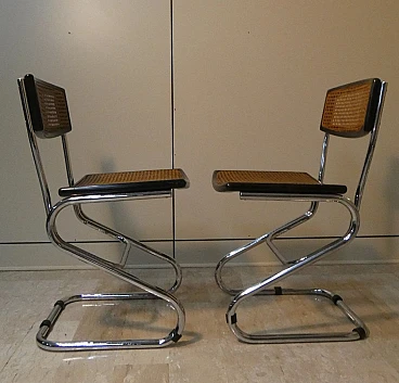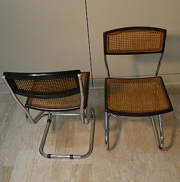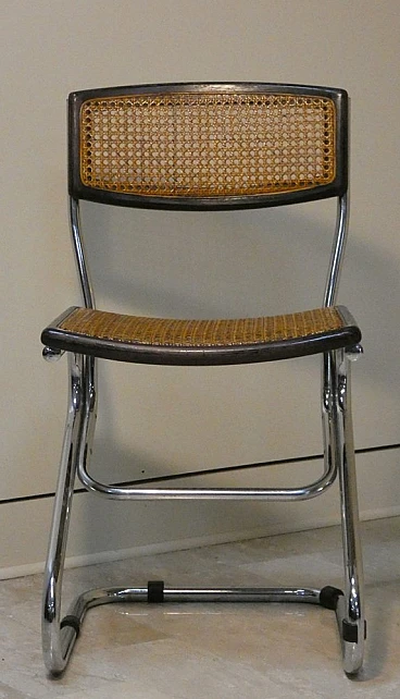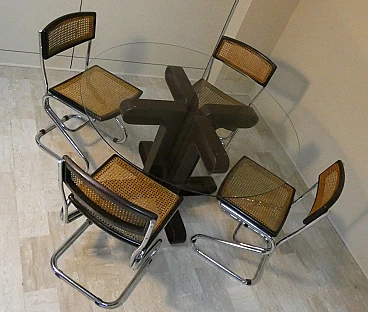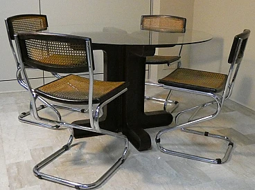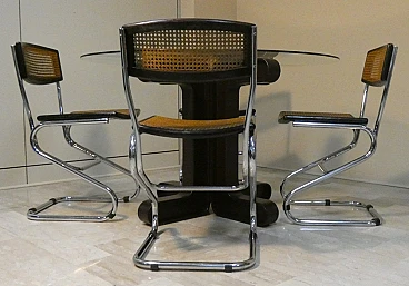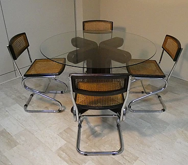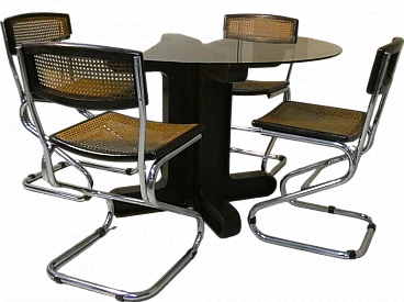 Tavolo in vetro con 4 sedie in paglia di Vienna e acciaio, anni '70