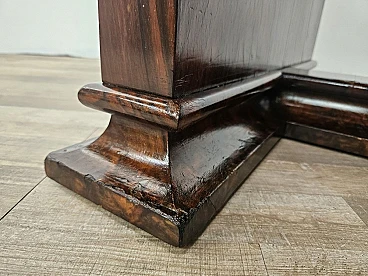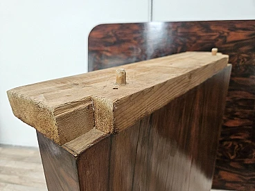 Tavolo da pranzo prodotto in Italia a cavallo tra gli anni '30 e '40, in stile Art Decò con piano rettangolare e possibilità di prolunghe laterali. Il tavolo è molto leggero in quanto la base è ad incastro e il piano si incastra in quattro perni come da foto, perfetto per essere anche spostato un domani. Le prolunghe laterali permettono di allungare circa 30/31cm per lato, perfetto per un 6-8 posti. Il mobile è stato lucidato ad olio e gommalacca, presenta normali segni d'usura dovuti all'età e all'utilizzo in particolari sui bordi (vedi foto). Prolunghe non comprese.
