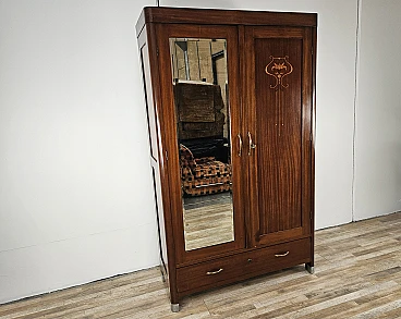 Armadio a due ante con specchio e ripiani interni, primo '900