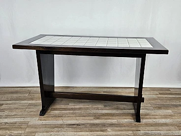 Tavolo rustico con piano in legno e ceramica, primo '900