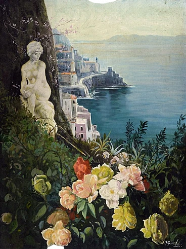 Costiera Amalfitana di Alfredo Santini, olio su tela, anni '90