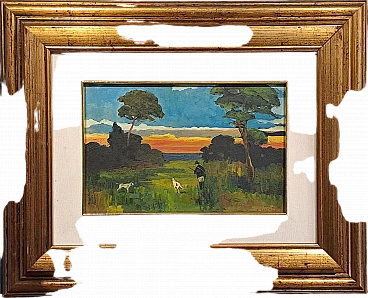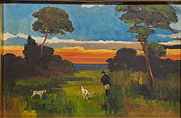 Renato Natali, Cacciatore al tramonto, olio su tavoletta, 1950