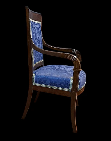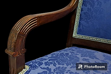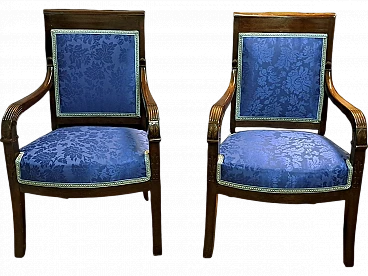 Coppia di poltrone Impero francesi in tessuto blu, '800