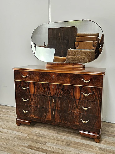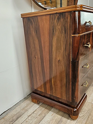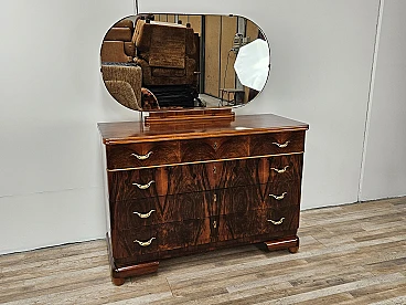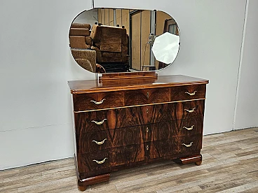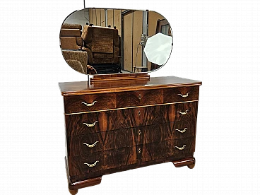 Comò Art Decò in noce e acero con specchiera, anni '40