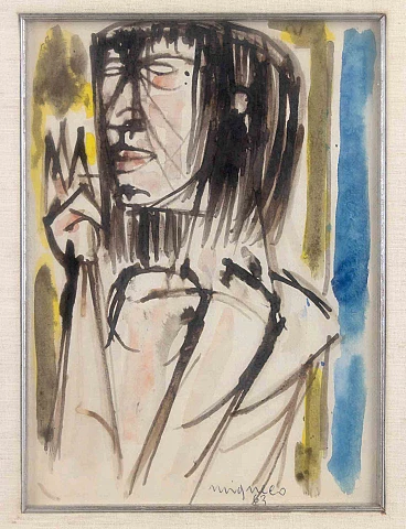 Giuseppe Migneco, Ritratto, Acquarello 1960-1979