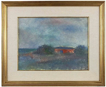 Giovanni Omiccioli, Paesaggio con casa rossa, Dipinto ad olio Anni 2000
