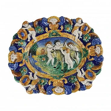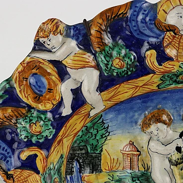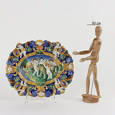 Piatto in maiolica di Pesaro policroma a rilievo, fine '700