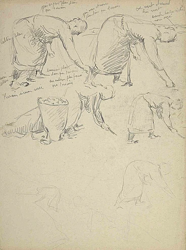 Figures in Paris è un disegno realizzato da André Corrier nella metà del XX secolo. Buone condizioni con leggera fioritura.