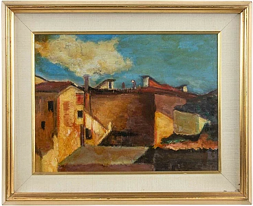 Gino Marzani, Paesaggio con case, Dipinto ad olio Anni 2000