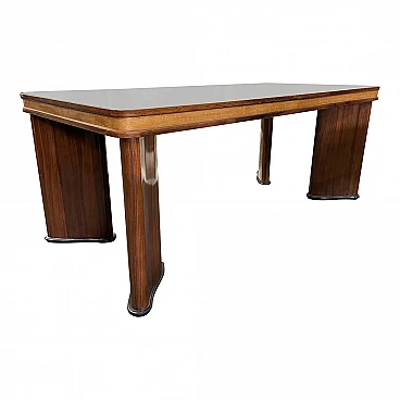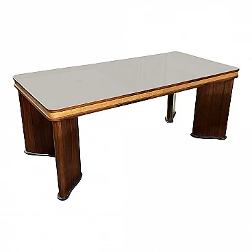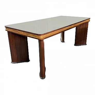 Tavolo Deco in legno con piano in vetro, anni '30