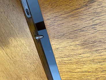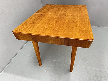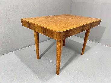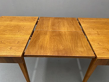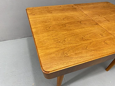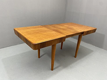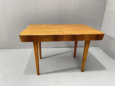 Questo tavolo da pranzo regolabile è stato progettato e realizzato dall'azienda Setona negli anni '50 nell'ex Cecoslovacchia. È fatto di noce. Il tavolo può essere facilmente aperto ed esteso fino a una lunghezza di 171 cm.