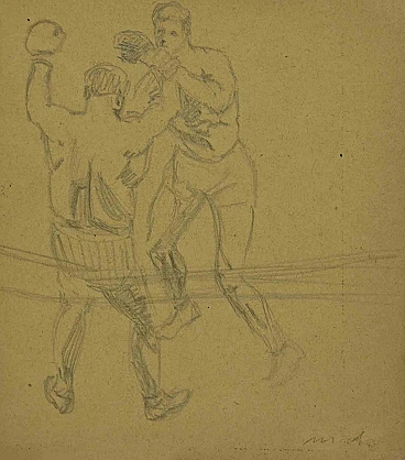 Boxing è un disegno realizzato nella metà del XX secolo. Carta color avorio color carbone. Buone condizioni con leggero foxing. L'opera d'arte è realizzata attraverso abili tratti espressivi.
