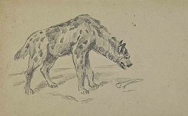 Hyena è un disegno realizzato da Joseph Colin nella metà del XX secolo. Matita su carta color avorio Buone condizioni con leggero foxing. L'opera d'arte è realizzata attraverso abili tratti espressivi.
