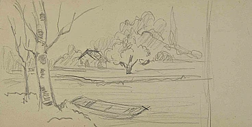 Landscape è un disegno realizzato da Joseph Colin nella metà del XX secolo. Matita su carta color avorio Buone condizioni con leggero foxing. L'opera è realizzata attraverso abili tratti espressivi.