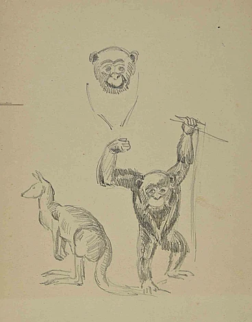 Monkeys è un disegno realizzato da Joseph Colin nella metà del XX secolo. Matita su carta color avorio Buone condizioni con leggero foxing. L'opera è realizzata attraverso abili tratti espressivi.