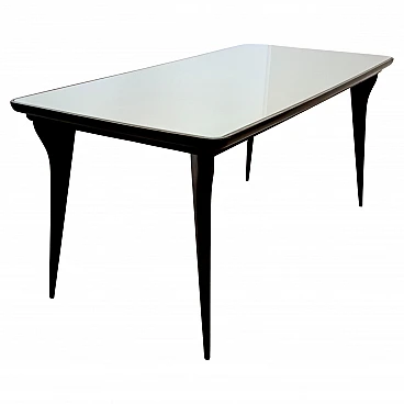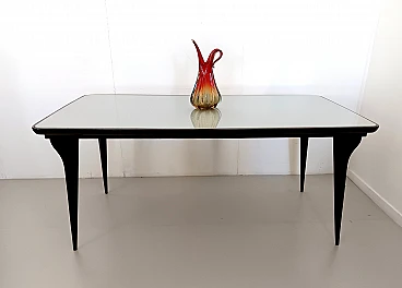 Tavolo da pranzo con piano in vetro stile Carlo De Carli, anni '50