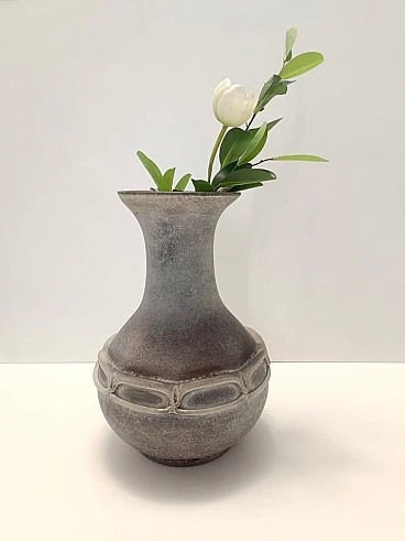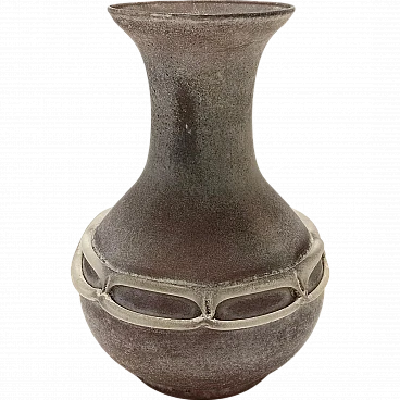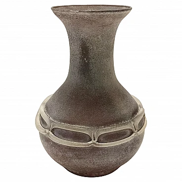 Made in Italy, anni '80. Questo vaso è in vetro di Murano stampato a mano in scavo marrone, attribuibile a Cenedese Scavo o Seguso. Si tratta di un pezzo vintage, quindi potrebbe presentare lievi tracce d'uso come la patina originale, ma può essere considerato in perfette condizioni originali e pronto a diventare un pezzo di casa. Misure: Diametro: 27 cm Altezza: 38 cm.