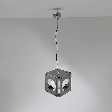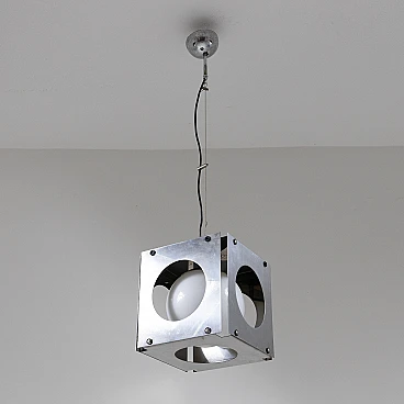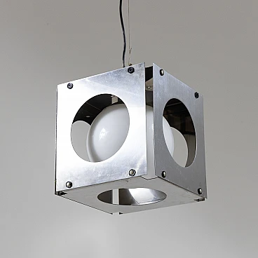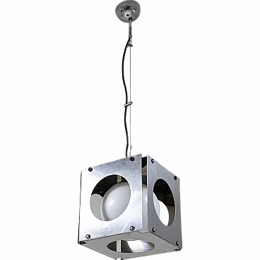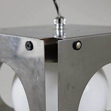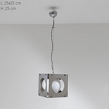 Lampada a sospensione in vetro lattimo e metallo, anni '70