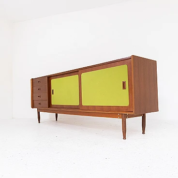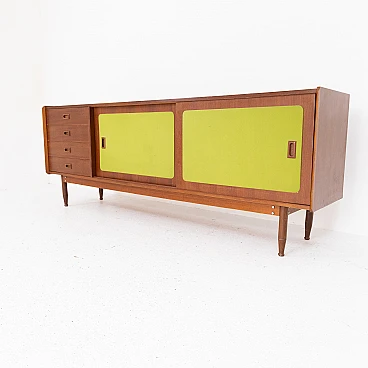 Credenza italiana in legno di noce e tessuto verde, anni '70