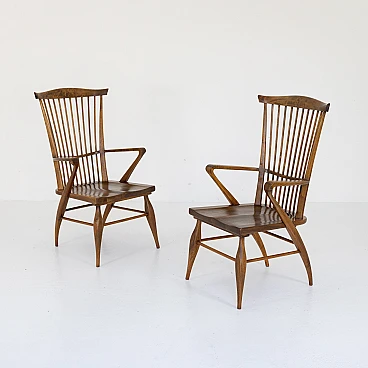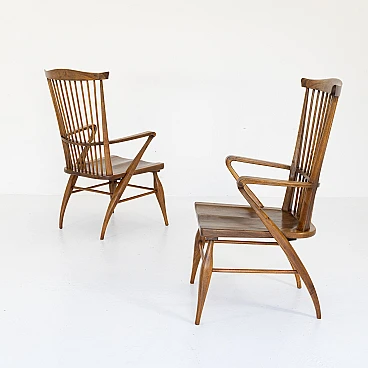 Coppia di poltrone in noce sagomato di Maurizio Tempestini, anni '50