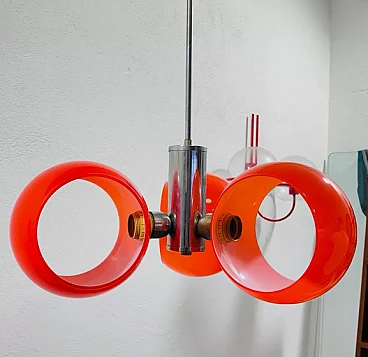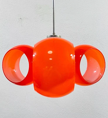 Lampadario in vetro arancione, anni '70