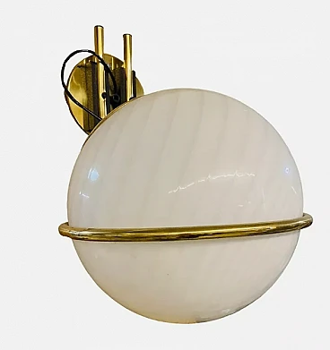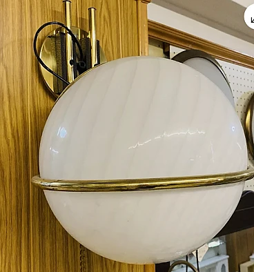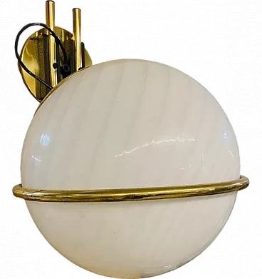 Lampada da parete in vetro di Murano e ottone, anni '70