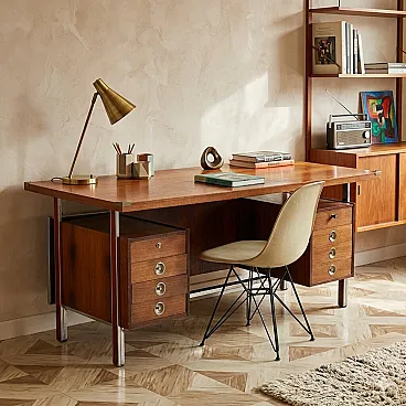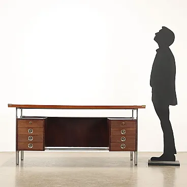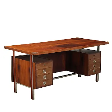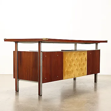 Scrivania in metallo e impiallacciata in legno esotico, anni '60