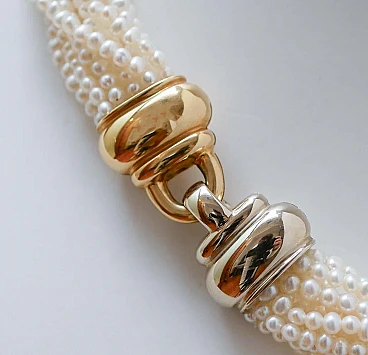 Collana in oro giallo e bianco 18 kt con perle, anni '50