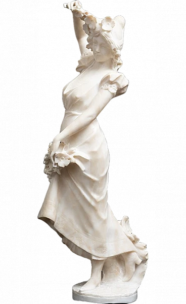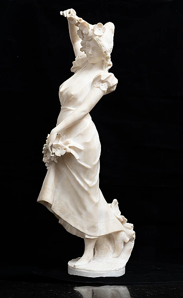 Descrizione: Scultura in alabastro Napoleone III Francese raffigurante una donna con fiori.