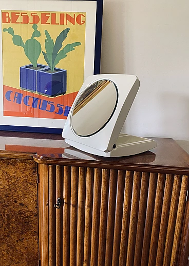 Specchio da tavolo o vanity bianca, 1970
