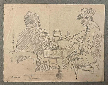 Playing è un disegno ad acquerello realizzato da Mino Maccari (1924-1989) nella metà del XX secolo. Firmato a mano. Buone condizioni con lievi fioriture. Mino Maccari (Siena, 1924-Roma, 16 giugno 1989) è stato uno scrittore italiano, pittore, incisore e giornalista, vincitore del Premio Feltrinelli per la Pittura nel 1963 e primo vincitore del Premio Satira Forte dei Marmi nel 1973. Terminati gli studi secondari, si iscrive all'università. Interventista come molti giovani del suo tempo, prese parte alla Grande Guerra all'età di diciannove anni come ufficiale di artiglieria da campo. Al termine del conflitto riprese gli studi universitari a Siena e nel 1920 si laureò in giurisprudenza. Nel 1924 fu chiamato da Angiolo Bencini a curare la stampa della rivista Il Selvaggio, apertamente intransigente fascista, rivoluzionaria e antiborghese, dove furono pubblicate le sue prime incisioni. Dopo alcuni anni di convivenza tra il lavoro al giornale e lo studio legale, all'inizio del 1926 lasciò la professione forense per assumere la direzione de Il Selvaggio che manterrà fino al 1942. Nel 1928 fu autore del piccolo libro edito da Vallecchi (Firenze), Il Trastullo di Strapaese (canzoni e legni incisi) che raccoglieva canti fascisti (lo stesso libro fu più volte sequestrato ad Antonio Gramsci durante la sua detenzione). Con il trasferimento della redazione del Selvaggio nel 1925 da Colle di Val d'Elsa a Firenze, Maccari collaborò con Ardengo Soffici, Ottone Rosai e Achille Lega. Nel frattempo, tra il 1927 e il 1930, si fa conoscere al grande pubblico come pittore partecipando a diverse mostre nazionali. Sempre nel 1930 Maccari lavora a Torino presso La Stampa come caporedattore e ha come direttore lo scrittore Curzio Malaparte. Molto intensa la sua presenza nel mondo culturale ed editoriale del regime fascista, scrive e collabora con diverse riviste: Quadrivio, L'Italia Letteraria, L'Italiano e Omnibus di Leo Longanesi; poi, durante la guerra, ne Il Primato di Bottai e, successivamente ancora, ne Il Mondo di Pannunzio (dal primo numero, nel 1949), fino a Documento di Federigo Valli. Vasta è anche la sua produzione grafica, che spazia dall'Album di Vallecchi (1925), Il trastullo di Strapaese (1928) a Linoleum (1931). Maccari illustrò nel 1934 La vecchia del Bal Bullier di Antonio Baldini e nel 1942 pubblicò la cartella Album, seguita da Come quando fuori Piove e Il superfluo illustrata. Per la sua opera pittorica ricca di evidenti accentuazioni cromatiche e di pennellate veloci, il disegno violento unito alla per il tratto vivace del segno grafico delle sue incisioni, è riconosciuto dalla critica come un artista completo. Nel 1962 gli viene affidata anche la presidenza dell'Accademia di San Luca a Roma e riesce ad ottenere una mostra personale alla Galleria 63 di New York. Infinita è la sua produzione di disegni, acquerelli, tempere, ecc., talvolta in collaborazione con prestigiose case editrici; da citare, a titolo esemplificativo, i 32 disegni in bianco e nero e a colori con cui ha illustrato Il gusto di vivere, volume che raccoglie scritti di Giancarlo Fusco, a cura di Natalia Aspesi e pubblicato da Laterza nel 1985. Maccari, Senese e grande contradaiolo della Torre, dipinse il Palio del 16 agosto 1970 vinto da Selva. Nel 1973 gli viene assegnato il Premio Satira Politica di Forte dei Marmi, premio nato in quell'anno. Morì senza grandi clamori, in silenzio, all'età di novant'anni, a Roma il 16 giugno 1989.