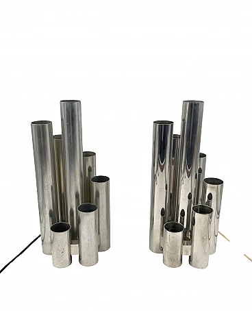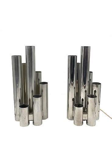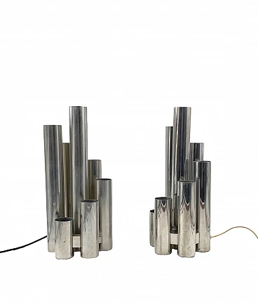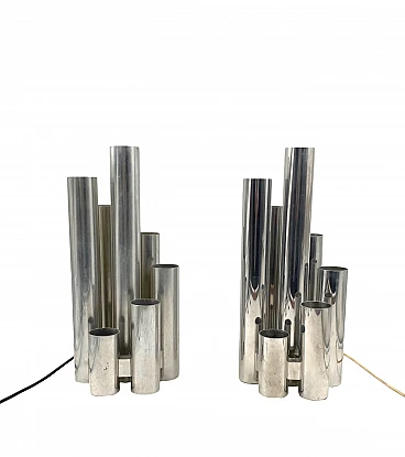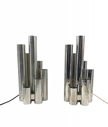 Set Hollywood Regency di 2 lampade da tavolo cromate, Sciolari Italia anni '70