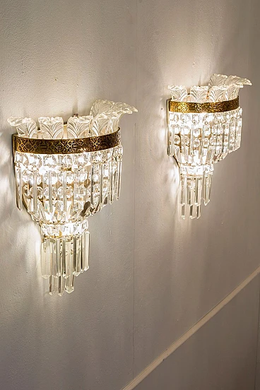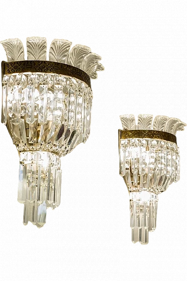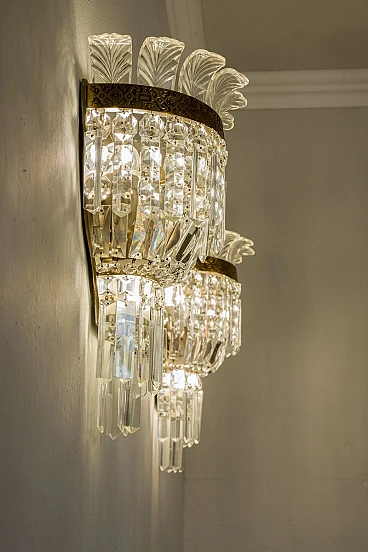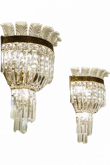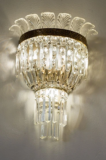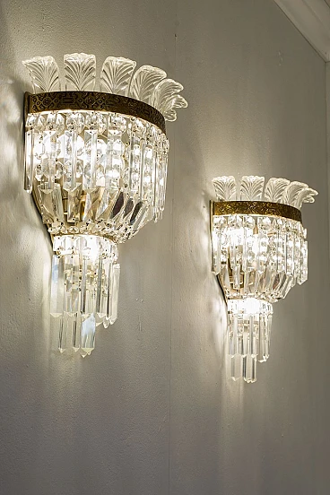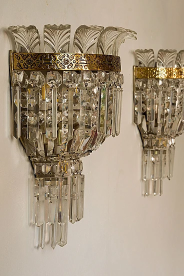Coppia di lampade da parete in cristallo di Boemia, anni '50