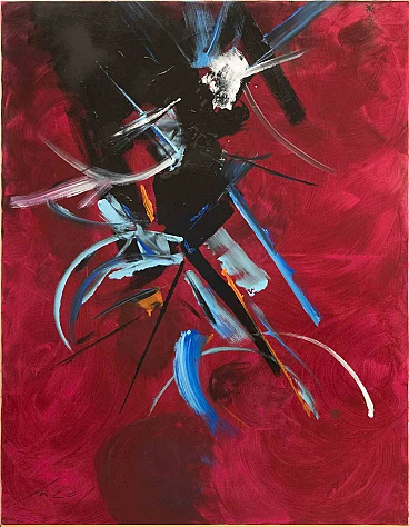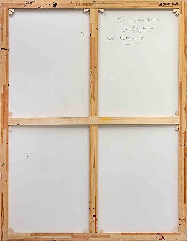 Odino è un'opera d'arte contemporanea realizzata dall'artista Nico Van Lucas. Olio colorato misto e acrilico su tela. Firmato a mano sul margine inferiore. Firma e titolo sul retro. Nico Van Lucas è lo pseudonimo artistico del pittore milanese Luca Ghilardi, scelto per rendere omaggio al figlio Nicolò e per sentirlo sempre vicino in questa avventura nel mondo dell'arte e della vita. Nato a Milano negli anni '60 e trasferitosi a Bergamo, la pittura di Ghilardi è piena di forza e senza ripensamenti. Può essere classificato come action painting. Ghilardi ha uno stile pittorico in cui il colore è protagonista, viene gettato e poi modellato sulla tela. L'opera che ne risulta enfatizza l'atto fisico stesso del dipingere, è un'azione non concepita, non pianificata nei modi e negli effetti finali.