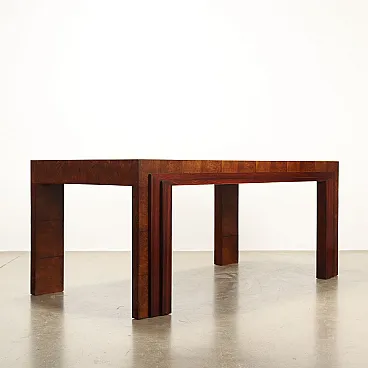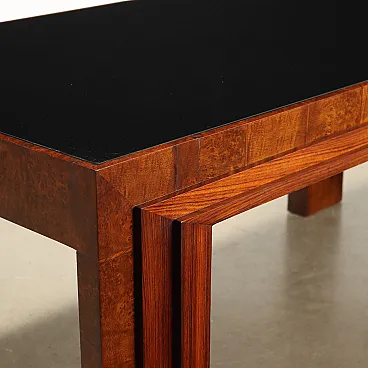 Tavolo impiallacciato in radica di noce e legno esotico, anni '20