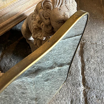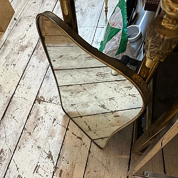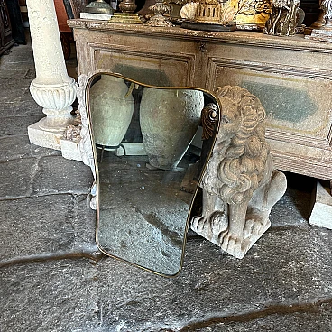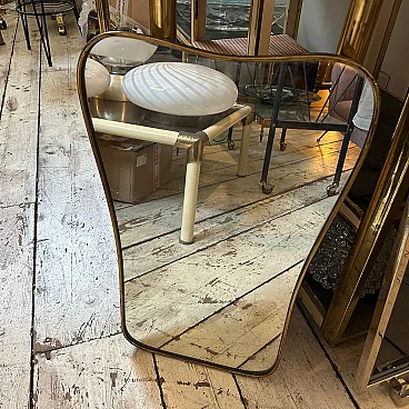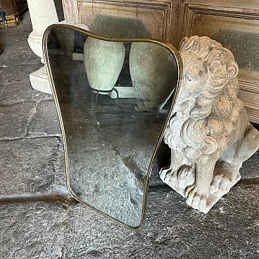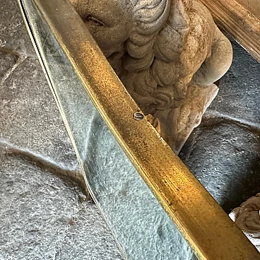 Un incredibile specchio da parete a forma di biscotto della metà del secolo scorso, realizzato a mano in Italia negli anni Cinquanta alla maniera di Gio Ponti, che utilizzava questi specchi da parete per arredare le case più prestigiose di Milano negli anni Cinquanta. La cornice in ottone dello specchio è in patina originale, il vetro originale presenta normali segni di uso e di età, si prega di vedere tutte le foto non solo la prima. Questo specchio da parete in ottone a forma di biscotto è un pezzo straordinario ed elegante che cattura l'essenza del design di metà secolo, riflettendo l'estetica elegante e sofisticata che ha definito l'epoca. Lo specchio è realizzato in ottone, un materiale comunemente utilizzato a metà del secolo scorso per la sua durata e il suo fascino lussuoso. L'ottone emana una luce calda e invitante, aggiungendo un tocco di opulenza a qualsiasi spazio. La cornice dello specchio presenta linee fluide e forme caratteristiche delle opere di Gio Ponti. Il design dello specchio è funzionale e artistico allo stesso tempo. L'ampia superficie riflettente offre un ampio spazio per la visione personale, mentre la cornice funge da elemento decorativo che migliora l'impatto visivo complessivo. La struttura in ottone è lucidata e mette in risalto la bellezza naturale del materiale. La sua superficie liscia ed elegante crea un contrasto accattivante con il vetro specchiato, amplificando le proprietà riflettenti dello specchio. La combinazione di ottone massiccio e vetro riflettente produce un armonioso gioco di luci e ombre, migliorando ulteriormente l'estetica del pezzo. Questo specchio da parete non è solo un oggetto funzionale ma anche un'opera d'arte che incarna l'eleganza e la raffinatezza del design di metà secolo. Emana un fascino senza tempo che si integra perfettamente con vari stili di interni, da quelli contemporanei a quelli di ispirazione retrò. Appeso in salotto, in camera da letto o in corridoio, questo specchio diventa un punto focale che eleva l'ambiente e aggiunge un tocco di fascino vintage.