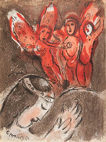 Marc Chagall, Sarah e gli angeli, litografia 1960-1979